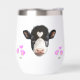 Schönes Kuhgesicht und rosa Blume. Ideal für Liebhaber des Landes.