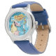 Kinderuhr aus Edelstahl mit blauem Lederarmband