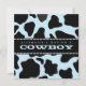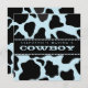 Lass allen wissen, dass dieser kleine Buckaroo wird ein Cowboy mit dieser lustigen cowhide Print Baby Dusche Einladung in Schwarz und Babyblau.