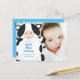 Feiern Sie ein Farm Thema Babydusche mit diesem niedlichen Cartoon Kuh-Design in einem ausgestopften Tierstil zeichnend! Der blaue Hintergrund macht es perfekt für einen kleinen Jungen unterwegs!