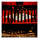 Kuhfänger oder -fender oder Sicherheitsgitter eines Vintagen Dampfzuges. Texturierte Fotos. Rot und Braun.