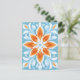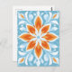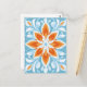 Energetische Orangenblüten schweben über beruhigendem Himmelblau und erinnern an einen frischen, blühenden Pop.