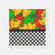 Die obere Hälfte dieses Papierserviers ist eine helle und fett gefärbte Glockenserie in grünen, roten und gelben Paprikaschoten mit der unteren Hälfte einer schwarz-weißen Schachbretter.