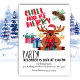 Diese niedliche Weihnachtsfeier-Party Einladung zeigt einen Elch nur Chillin und Eröffnungsgeschenke