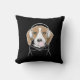 Das Design zeigt einen entspannenden Beagle mit Kopfhörern und blühendem rosa Bublegum. Mit ihrer personalisierten Lieblingsfarbe ist es ein niedliches, lustiges und einzigartiges Kissen für Hundefreunde.