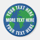 Rett Planet Erde Kühlschrankmagnet mit benutzerdefiniertem Text. Blaues und grünes Weltkarte-Logo mit weißer Textvorlage. Erstellen Sie Magnete für die globale Erwärmung, Klimawandel Umweltprobleme, Naturschutz, grüne Energie, Waldschutz, Proteste, Plastiksuppe, recycle, recycle usw. Zeichnend Land Meer. Rettet den Planeten, rett die Erde! Passen Sie sich mit Ihrem Slogan oder Sprichwort an.