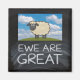 Fun Schafspuppe "Ewe Are Great" geschrieben auf einem Tafel mit einem Bild von Cartoon-Wiedergabe eines Schafes. Token Geschenkartikel für diejenigen, die Schafe lieben, wie Gewehre und woll, jemanden eine ermutigende Botschaft zu senden.