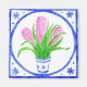 Ein quadratischer Kühlschrankmagnet mit einem handgemalten "Fliesendesign" aus einem Topf mit rosa Hyazinthen. (Siehe auch passende Grußkarte und andere Geschenke.)