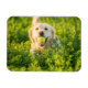 "Ich Liebe Golden Retrievers!" Kühlschrankmagnet mit dem Bild des Golden Retriever, der einen Tennisball von üppig grünen Feldern holt.