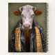 Dieses Design zeigt ein Portrait einer Kuh in einer Lederjacke und Schal.