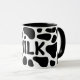 Sehr lustig aussehende Tasse mit Kuhflecken und großem MILK-Text. Sagt Leuten, dass du ein lustiger Mensch mit einem großen Gefühl von Spaß bist.