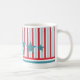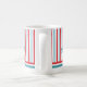 Stilvolle und lebendige Bold 4. Juli US Flagge Tasse mit schlichten rot, weiß und blau Streifen und einer Reihe von lustigen türkisfarbenen Sternen. Diese stilvolle Tasse ist eine großartige Möglichkeit, um Ihre patriotische Seite zu zeigen und Ihr Lieblingsgetränk zu trinken! Passen Sie dieses Design mit einem Namen oder einem anderen Text an. Um Schriftart oder Textfarben zu ändern, klicken Sie auf den Button "Anpassen". Dieses Design ist auch für den Gedenktag geeignet!
