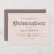 Feiern Sie diesen besonderen Meilenstein mit einer minimalistischen und eleganten Quinceñera Einladung. Die Überschrift "Quinceañera" wird schön in gotischer Blakkletter gerendert, während die Einzelheiten der Veranstaltung in einem raffinierten Serif-Schriftart liegen. Ideal für eine anspruchsvolle und unvergessliche Feier.