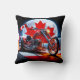 Ein auffallender Chopper mit kanadischer Fahne thront auf einem roten und weißen Hintergrund, der von einem hellen Vollmond mit einer ruhigen Aussicht auf den See erhellt wird.