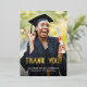 Feiern Sie Ihren Meilenstein mit dieser anpassbaren Abschluss Dankeschön-Karte mit einem modernen "Danke!"-Overlay in der angesagten Goldfolie. Zeigen Sie zwei hochgeschätzte Fotos des Absolventen und drücken Sie Dankbarkeit mit einer personalisierten Botschaft, um Ihren Gästen für ihre Anwesenheit bei der Zeremonie und ihre nachdenklichen Geschenke zu danken.