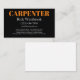 Carpenter Visitenkarten-Vorlage in einem fett einfachen, modernen Design, die den Namen Ihres Berufs und eine Liste der Dienstleistungen, die Sie online anpassen können zeigt. Vorgestellt mit Vollfarbendruck inklusive. Entwickelt für einen lizenzierten Carpenter oder Vertragspartner.