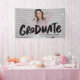 Dieses Banner mit einem Foto Abschluss verfügt über ein Foto mit Vollbild und dem Wort "graduate" in fett gebürstetem Schwarz. Dieses stilvolle Schild bietet auch Platz für den Namen, die Schule und das Jahr des Absolventen und alle anderen Details, die Sie gewollt haben zu teilen. Das ist ein tolles Dekor für Graduiertenfeiern!