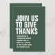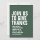 Mit fett weißer Typografie ist dieses Abendessen im grünen Erntedank einfach zu gestalten und Set für ein lustiges und lässiges Putenfest.