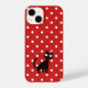 Niedlich, keck und ein bisschen frech! Diese rote und weiße Handyhülle mit Punkten zeigt eine süße schwarze Katze, die einem klassischen Muster Persönlichkeit verleiht. Die kühnen Punkte bringen eine fröhliche, retro Stimmung, während die neugierige schwarze Katze einen spielerischen Mittelpunkt schafft, den Katzenliebhaber lieben werden.