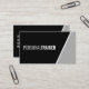 Fett Schwarz/Weiß Personal Trainer Business Card mit Informationen im fett formatierten Schriftart auf schwarzem Hintergrund mit weißem und grauem Seitenrand. Perfekt für Personal Trainer, Fitness Trainer und viele andere Berufe.