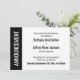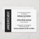 Hier ist eine kühne, moderne Karte, um Ihre Gäste zu benachrichtigen, wenn es notwendig wird, um Ihr Hochzeitstag zu ändern. Verwenden Sie die Vorlagenfelder, um Ihre persönlichen Daten hinzuzufügen und dieses einzigartige, einfache Design zu Ihrem eigenen zu machen. Ein Farbblock entlang der links ist schwarz, passend zum Text und auf der Rückseite der Karte; über diesem Streifen auf der verlassen Seite erscheint "ANNOCEMENT" fett weiß. Alle Schriftart und Farben sind ebenfalls editierbar. Bitte kontaktieren Sie uns für spezielle Anfragen oder für individuelle Betreuung. Weitere Teile mit alternativem Wortlaut sind auch in der Sammlung verfügbar.