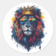 Kühner Löwenkopf mit Sonnenbrille und Krone Runder Aufkleber