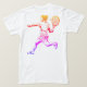 Dieses dynamische T - Shirt-Design zelebriert die Energie und den Geist des Tennis mit einer schlanken, modernen Drehung. Mit einer stilisierten Silhouette eines Spielers in Bewegung, das Design beinhaltet dynamische Farbstriche, die Schnelligkeit und Präzision wecken. Dieses Design mit klaren Linien und feinem Grafiken erweckt den Nervenkitzel jedes Serves, Volleys und Schmetterlings. Ideal für leidenschaftliche Tennisbegeisterte, vereint es Mode mit Sport und ist damit ein idealer Ort für lässige Abnutzung und Spieltag.