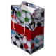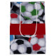 Mittlere glatte Geschenktasche mit einem Bild der roten, grünen, blauen und schwarzen Fußbälle auf Flanell. Rotes Band hat die kundengerechte Phrase "Küken-Grabungs-Fußball-Spieler." See große Geschenktasche zusammenbringend. Sehen Sie die gesamte der Vatertags-Geschenk-Taschensammlung im SPEZIELLEN TOUCHS | Gastgeschenkeabschnitt.