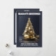Ein wunderschöner und luxuriöser goldener Weihnachtsbaum aus Töpfen und Pfannen wird von einem tiefblauen Hintergrund und Erholungen auf goldenen Tellern, die kleine Baubels neben ihnen haben, gerahmt. Weiße, fette Vorlagen für Ihre Feiertagsgrüße und Ihren Firmennamen erscheinen oben und unten im Design. Die Rückseite ist gleich dunkelblau und hat Text plus QR-Code (ändern Sie Ihren eigenen Code oder Logo) und Bildvorlagen. Sie eignen sich ideal für die festliche Urlaubsperiode von Koch, Restaurants, Köchen, Cateringen oder Küchengeräteherstellern. Vermitteln Sie den Geist der Saison Kunden, Freunden und Familie. Feierliche Grüße der Jahreszeit und glückliche Feiertage!