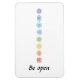 Farbige Kundalini Yoga-Chakra-Linie von Root bis Aura mit "Be Open"-Text