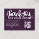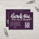 Vielen Dank an unseren lila Kunden. Bitte fügen Sie QR Code Coupon-Visitenkarte ein. Diese durchdachte Karte verfügt über einen QR-Code, der Ihre Kunden zu einem exklusiven Rabatt oder Sonderangebot führt und die Loyalität der Kunden würdigt. Mit dieser personalisierten und stilvollen Geste können Sie Ihren Kunden einen bleibenden Eindruck vermitteln und die Beziehungen stärken.
