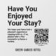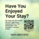 Ermutigen Sie Kunden, eine Überprüfung verlassen. Nachricht lautet: "Wir hoffen, dass Sie eine angenehme Erfahrung mit uns bleibe haben. Wenn ja, nehmen Sie sich bitte ein paar Augenblicke Zeit, um eine Rezension verlassen." Ändern Sie den Wortlaut in Anzug Ihrer Anforderungen. Ändern Sie den Link QR Code auf den Link, der zu Ihrer eigenen Rezensionsseite führt. Wenn Google dies tut, erhalten Sie Ratschläge: https://tinyurl.com/5ydtb22k