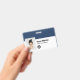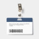 Dieses Abzeichen mit dem Namen des Mitarbeiters kann einfach mit Foto, Bar-Scan und Firmenlogo personalisiert werden. Ein einfaches Business-Design links in marineblau-weiß-farbenen, vollständig anpassbaren Vorder- und Rücken-Größen, serifenlos einfache und moderne Schriftart und ein berufliches und klares Aussehen. Verfügbar mit oder ohne Lanyard, Metallklammer oder mit Retraktierbar. Keine Mindestbestellung.