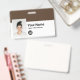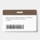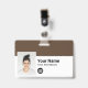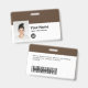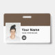Dieses Abzeichen mit dem Namen des Mitarbeiters kann einfach mit Foto, Bar-Scan und Firmenlogo personalisiert werden. Ein einfaches Business-Design, links in dunkelbraunen und weißen Farbtönen, vollständig anpassbar in Vorder- und Rücken-Größen, serifenlos, einfache und moderne Schriftart und ein berufliches und klares Aussehen. Verfügbar mit oder ohne Lanyard, Metallklammer oder mit Retraktierbar. Keine Mindestbestellung.