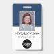 Ein einfaches Business-Design, das Ihre Bürologos und Ihren Mitarbeiternamen hervorhebt. Sie können vorne und hinten einen Scan-Bar-Code hinzufügen. Sie können auch die Hintergrundfarbe ändern.