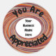 Dieser knisternde, wirbelnde Aufkleber ist mit einer hellen rosa, orangefarbenen und weißen Spirale versehen. "Sie sind geschätzt" und Ihr Firmenname kann schnell und einfach an Ihre Bedürfnisse angepasst werden. Original-Foto von C. McGouldrick