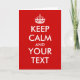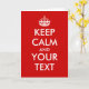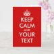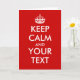Kundengerecht behalten Sie ruhig und machen Sie Grußkarten weiter. Niedliche Vintage Karte für Freunde und Familie. Personalizable Schablonentext und Gewohnheitshintergrundfarbe. IE-Rot. Schaffen Sie Ihre Selbst behalten Ruhe und weitermachen Parodie.