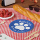 Dieser PapierTeller zeigt einen weißen Tatzendruck auf einem blauen Hintergrund mit dem Text Ihrer Wahl an. Er sind für den Tatzendruck groß, der themed sind, den Hund, der themed sind, die themed Katze oder die tierischen themed Geburtstags-Partys.