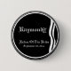 Klassischer Schwarzweiss-Hochzeitsentwurfsknopf. Ersetzen Sie Vater der Vorname- und Nachnameinitiale der Braut durch korrekte Informationen, und das Datum Ihrer Heirat auf diesem eleganten Andenkenknopf, in "personifizieren es" Kasten auf dem Recht dieser Produktseite. Sie beschließen möglicherweise, irgendwelche der Informationen über Knopf zu ändern und/oder zu löschen. Schriftart, Schriftartfarbe und Schriftartgröße können auch geändert werden.