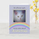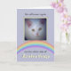Addieren Sie eine Foto-Regenbogen-Entwurfs-Karte -- Blau fügt das Foto Ihres eigenen Haustieres dieser Erinnerungskarte hinzu, die einen hoffnungsvollen und inspirierenden Regenbogenbrückenentwurf kennzeichnet. Stellen Sie ein Andenken her, um sich zu erinnern, oder jemand, das Sie sich ungefähr von einem geliebten Freund interessieren, ob furred, mit Federn versehen oder gerippt. Oder senden Sie als tröstenBeileidskarte für jemand, das zu den Ausdrücken mit Haustierverlust kommt. Diese Karte zeigt, eine süße weiße Katze aber erinnert sich, dass Sie ein Bild von Ihren Selbst laden und es zu jedem möglichem Haustier ändern können: Hund, Katze, Hamster, Fische, Vogel, Ratte, Häschen, Pferd oder ein exotischeres Tier. Alle können Erholung im Frieden, der über Regenbogenbrücke liegt.