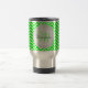 Kundengerechtes Monogramm - Edelstahl-Entwurf auf grünem Muster.