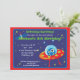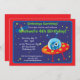 Diese Spaßgeburtstags-Party Einladung kennzeichnet ein alien in einem Raumschiff und in einer Raumstation auf einem blauen Weltraumhintergrund mit Sternen. Vollständig kundengerecht.