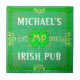 Stellen Sie Ihren eigenen kundenspezifischen, irischen Pub, Zuhause-Bar-Fliesen-Untersetzer unter Verwendung dieser Schablone her. Die Untersetzer werden hergestellt, um wie altes grünes Holz mit viel des Vintagen Schnörkels in den Schatten von Grünem, von weißem auszusehen, Orange und Gold. Es gibt auch fünf Kleeblätter/Klee im Entwurf. Diese Untersetzer können mit Ihrem eigenen Namen, Initialen/Monogramm personalisiert sein und das Jahr wurden Ihre Brauerei, Bar oder Irland-themenorientierte Mannhöhle hergestellt. Füllen Sie einfach die einfache diy Schablone aus, oder Klicken "fertigt sie", wenn Ihr Text lang läuft u. Sie muss Textfarben u. -Schriftart die Größe neu bestimmen, neu ordnen oder ändern besonders an. Diese sind für Heiligen Patrick Tag oder das ganze Jahr lang perfekt.
