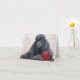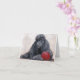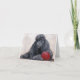 Diese Notenkarte enthält eine Reproduktion meines originalen Ölgemäldes eines schwarzen Poodles mit einem roten Ball.