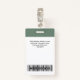 Dieses Abzeichen mit beruflichem Verwaltungsnamen ohne Foto ist einfach zu personalisieren. Es bietet eine einfache Kopie und Einfügen von qr-Code-Vorlage, Bar scannen und großes Firmenlogo. Ein einfaches Business-Design in Bio Weiß- und Grün-Farbtönen, das sich in Vorder- und Rücken-Größen, serifenlosen Schriftart und einem beruflichen und klaren Aussehen, perfekt für kleine Geschäftsangestellte, Chef, Gäste. Diese Business-ID-Abzeichen sind mit Lanyard, Metallklammer oder mit Retraktierbar erhältlich. Keine Mindestbestellung, aber rett Geld und genießen Sie Zazzle Rabatte bei mehreren Bestellungen!