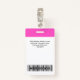 Dieses Abzeichen mit beruflichem Verwaltungsnamen ohne Foto ist einfach zu personalisieren. Es bietet eine einfache Kopie und Einfügen von qr-Code-Vorlage, Bar scannen und großes Firmenlogo. Ein einfaches Business-Design in Neon-Rosa und Weiß-Farben, das in Vorder- und Rücken-Größen vollständig anpassbar ist, serifenlose, moderne Schriftart und ein berufliches und übersichtliches Aussehen, perfekt für kleine Geschäftsangestellte, Chef, Gäste. Diese Business-ID-Abzeichen sind mit Lanyard, Metallklammer oder mit Retraktierbar erhältlich. Keine Mindestbestellung, aber rett Geld und genießen Sie Zazzle Rabatte bei mehreren Bestellungen!