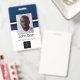 Blaues individuelles Mitarbeiter-ID-Abzeichen Fügen Sie Ihre eigenen personalisierten Daten und Foto, um es einzigartig und eines von einem Foto-Abzeichen.