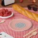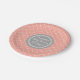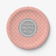 Kundengerechter Name ist es Teller eines Mädchenbabyduschen-Party im Spaß und im orange Rosa-, Grauem und weißemmarokkanischen quatrefoil Gittermuster des Chicpfirsiches.