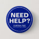 Der perfekte Knopf für Freiwillige oder die, die anderen helfen - Text liest "Bedarfs-Hilfe?" mit Raum für zwei Linien kundenspezifischen Text. Addieren Sie Ihren Ereignisnamen, freiwilligen Namen, Datum, etc. (oder Löschung). Groß für Geschäfte, Schulen, spezielle Ereignisse, Bibliotheken, Wohltätigkeitereignisse, Rennen, zur Schau tragende Ereignisse, usw., in dem Leute/Kunden Fragen für Freiwillige/Personal haben konnten. Hintergrundfarbe ist z.Z. Blau, aber dieses kann leicht geändert werden - Klicken personifiziert,/fertigt und verzeichnet unten besonders an in einer Liste, um Pflücker zu färben.