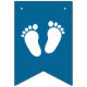 Kundenspezifische blaue Jungen-Babyparty-Flaggen-Fahnen-Flaggen. Niedliche babyshower Partyversorgungen, Girlanden, Flaggen ona-Schnur und Zusätze für neues Baby und Eltern. Addieren Sie Ihren eigenen personalisierten Namen oder lustiges Zitat beliebig. Bunter Frackentwurf für Feier des neugeborenen Babys, der Schwangerschaft oder der Mutterschaft. Spaßdekorationen für Zuhause, Arbeit oder Büro. Elegante Schablone mit Illustrationen der Babyfußabdrücke, des Wagens und des kleinen Elefanten mit Herzen. Süßer Dekorentwurf mit Baby Stroller/Pram/Buggy. Neutrale Grafik für Jungen und Mädchen. Ändern Sie einfach die Farben, um zum Beispiel auszuzacken oder sich gelb zu färben.